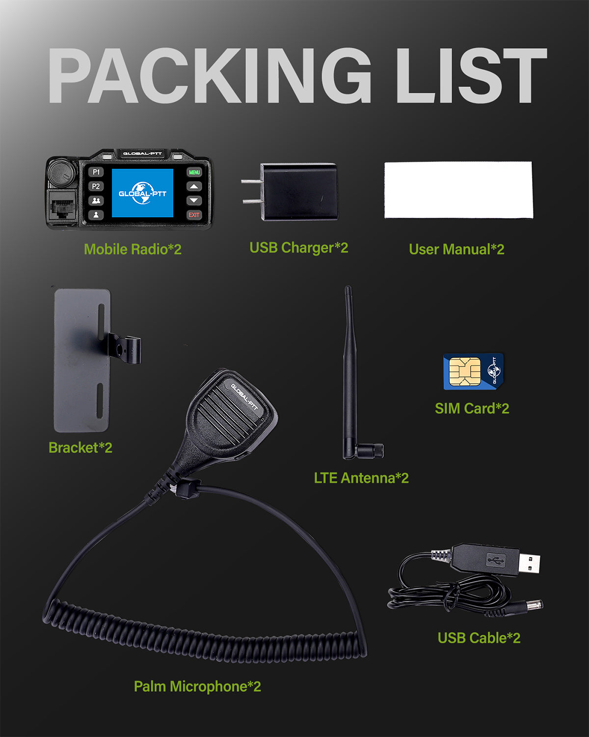 - COMPLETE KIT: Each radio comes with 2 pre-installed SIM card, 2 antenna, 2 handheld microphone, 2 mounting holder, 2 power plug, and user manual for immediate use