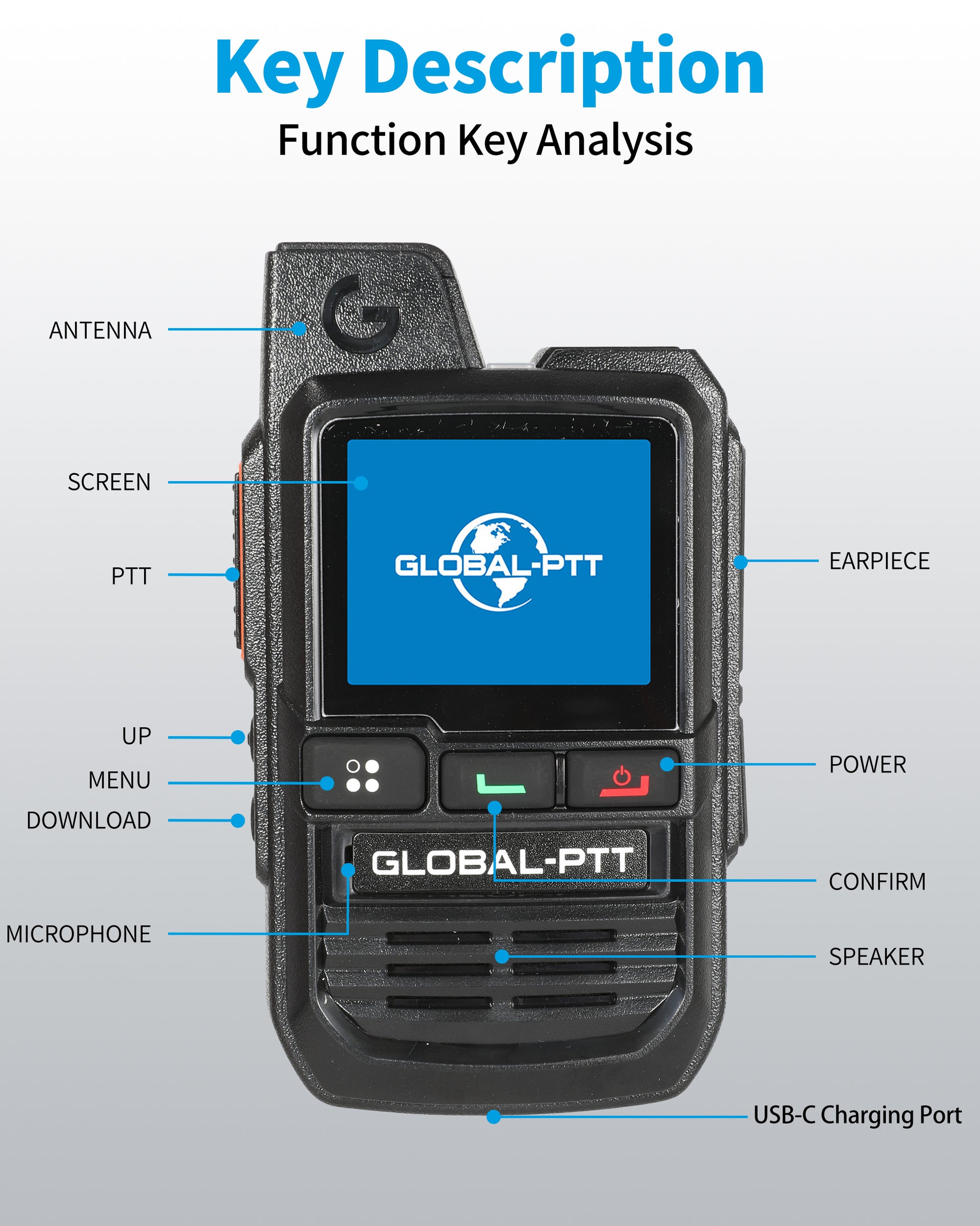 GLOBAL-PTT G0 PoC Radios Unlimited Range - 4G LTE Nationwide PTT Long Range Walkie Talkies